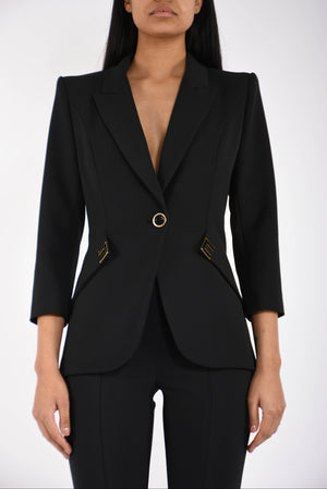 Giacca in doppio crêpe stretch con dettagli logo
